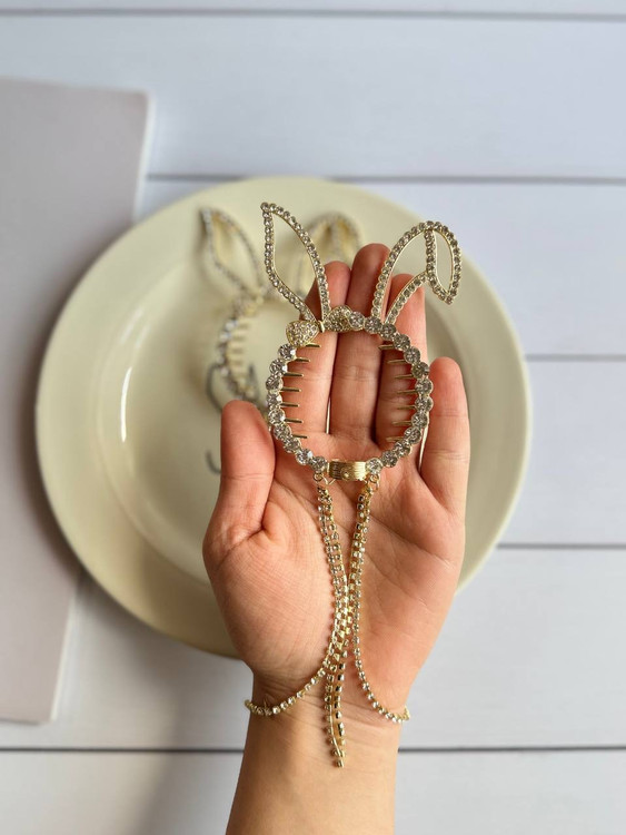 - گیره را باز کرده و دور موهای جمع شده قرار دهید.